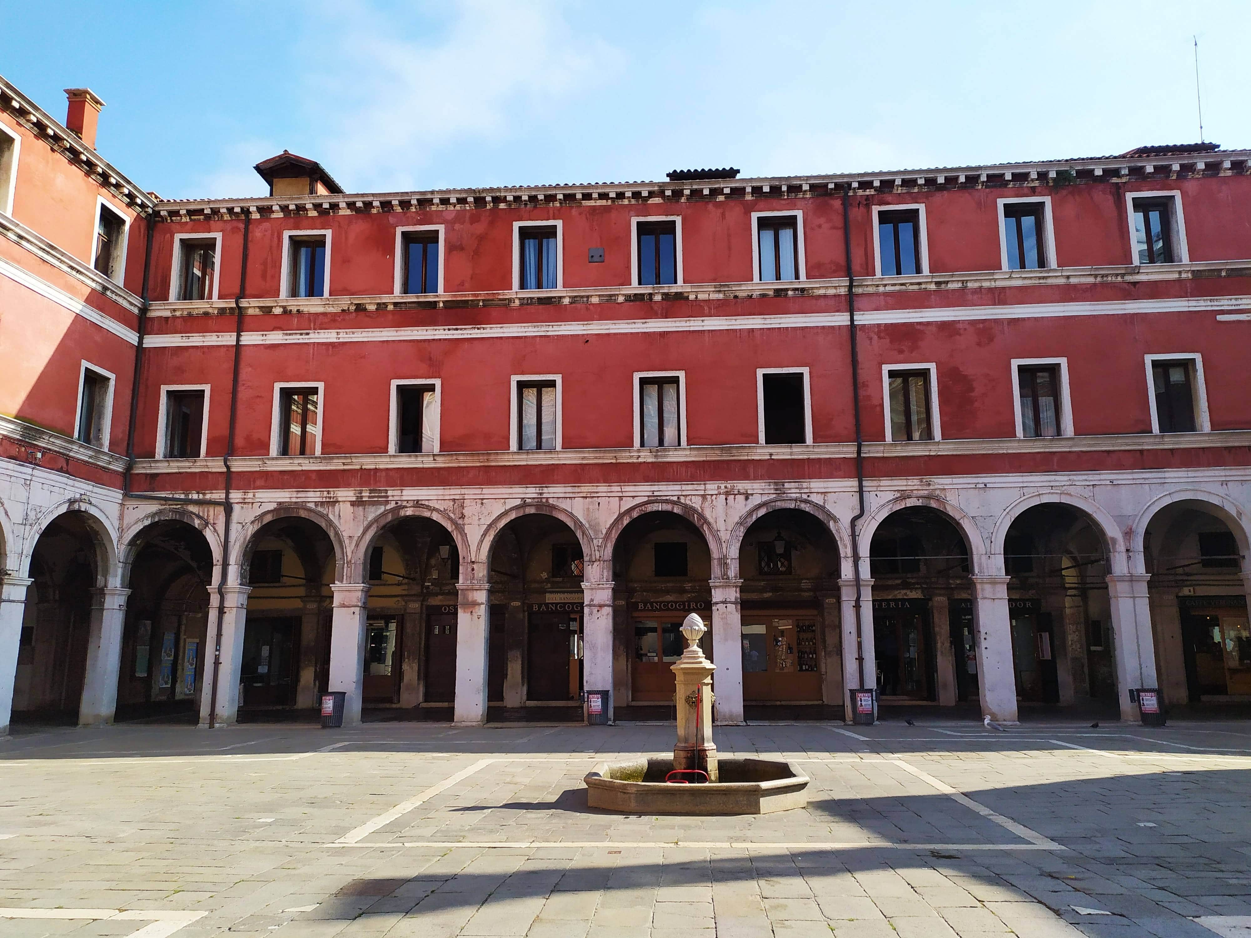 Si dirigiamo verso la Basilica di San Marco, il Palazzo Ducale e il Ponte dei Sospiri prima della visita al Teatro La Fenice. Per arrivarci, attraversiamo tranquille calli e ariosi campielli, con musicisti di strada e curiosi passanti, case (ex AirBnb) svuotate e uffici in affitto. Arriviamo sotto i portici affrescati al lato del Ponte di Rialto e lo attraversiamo. Eccoci in Piazza San Marco, una delle più importanti piazze monumentali del mondo, chiamata ‘salotto d’Europa’ per la sua eleganza architettonica. Si tratta dell’unico spazio urbano di Venezia che possa essere chiamata propriamente ‘piazza’ rispetto a quelli chiamati ‘campi’ o ‘campielli’. Ha forma trapezoidale, lunghezza di 170 metri e si divide in tre zone: piazza San Marco, piazzetta San Marco e piazzetta dei Leoncini.